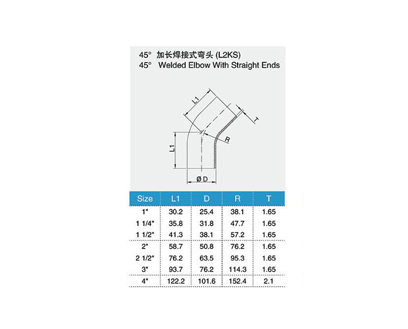 45°加長(zhǎng)焊接式彎頭(L2SS)